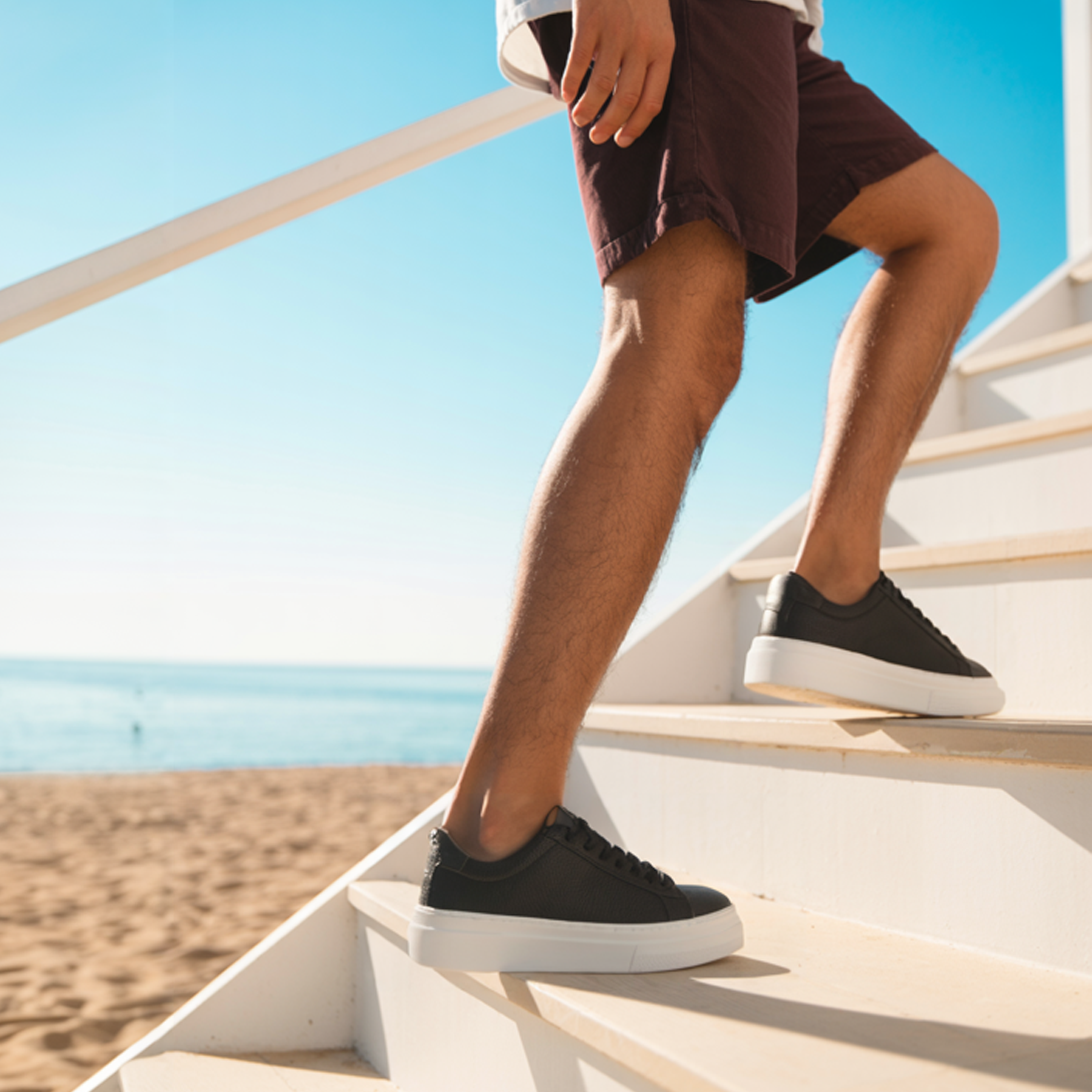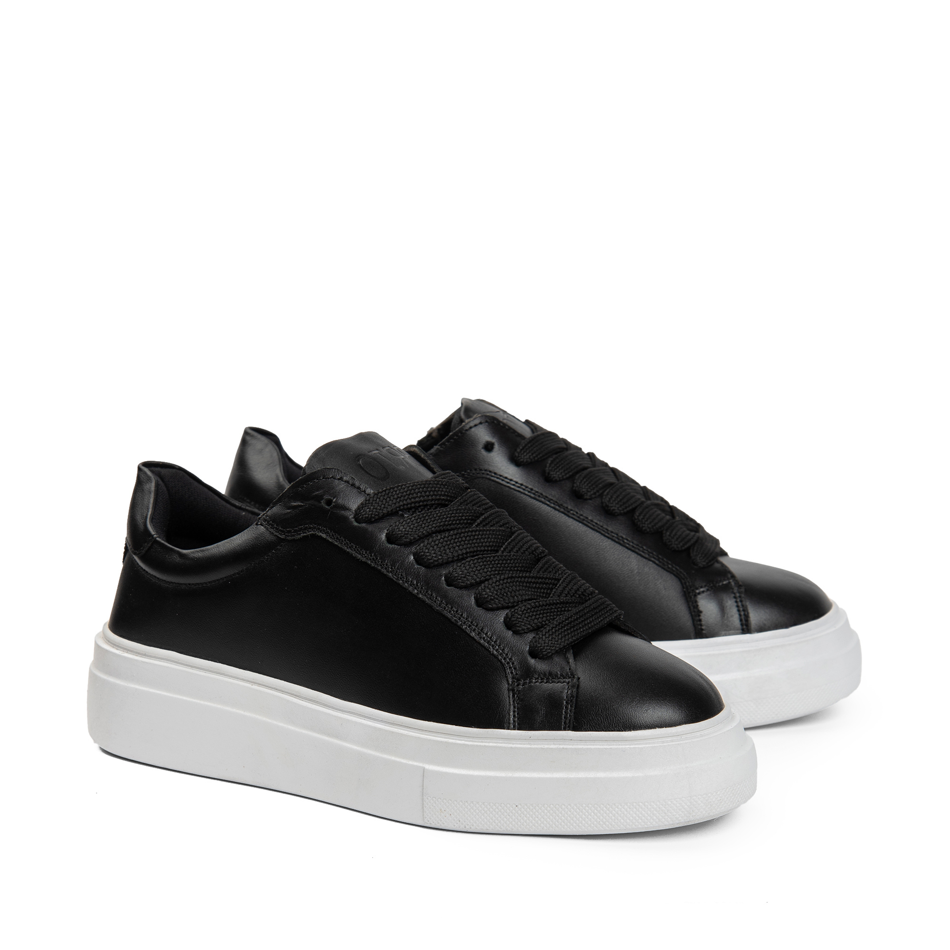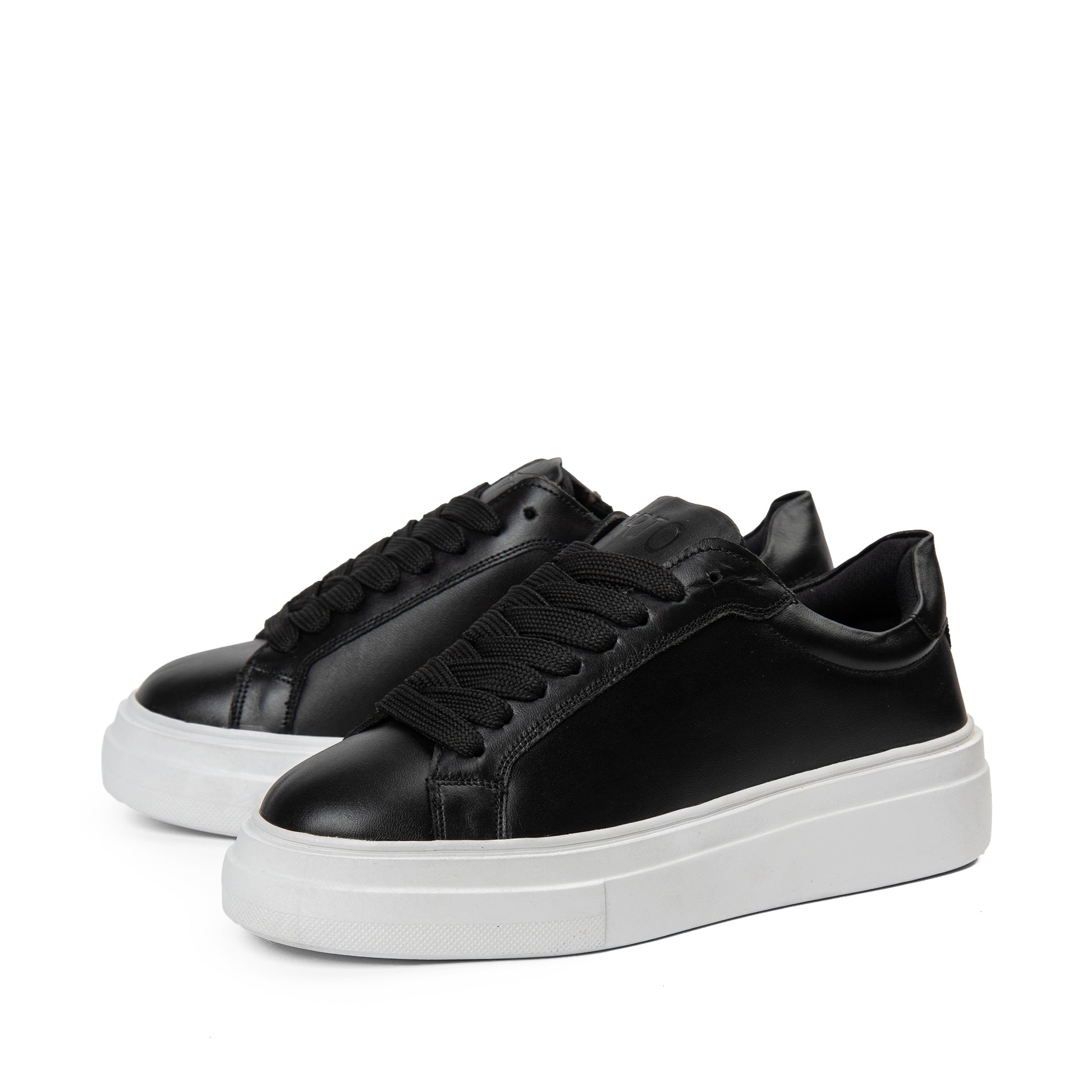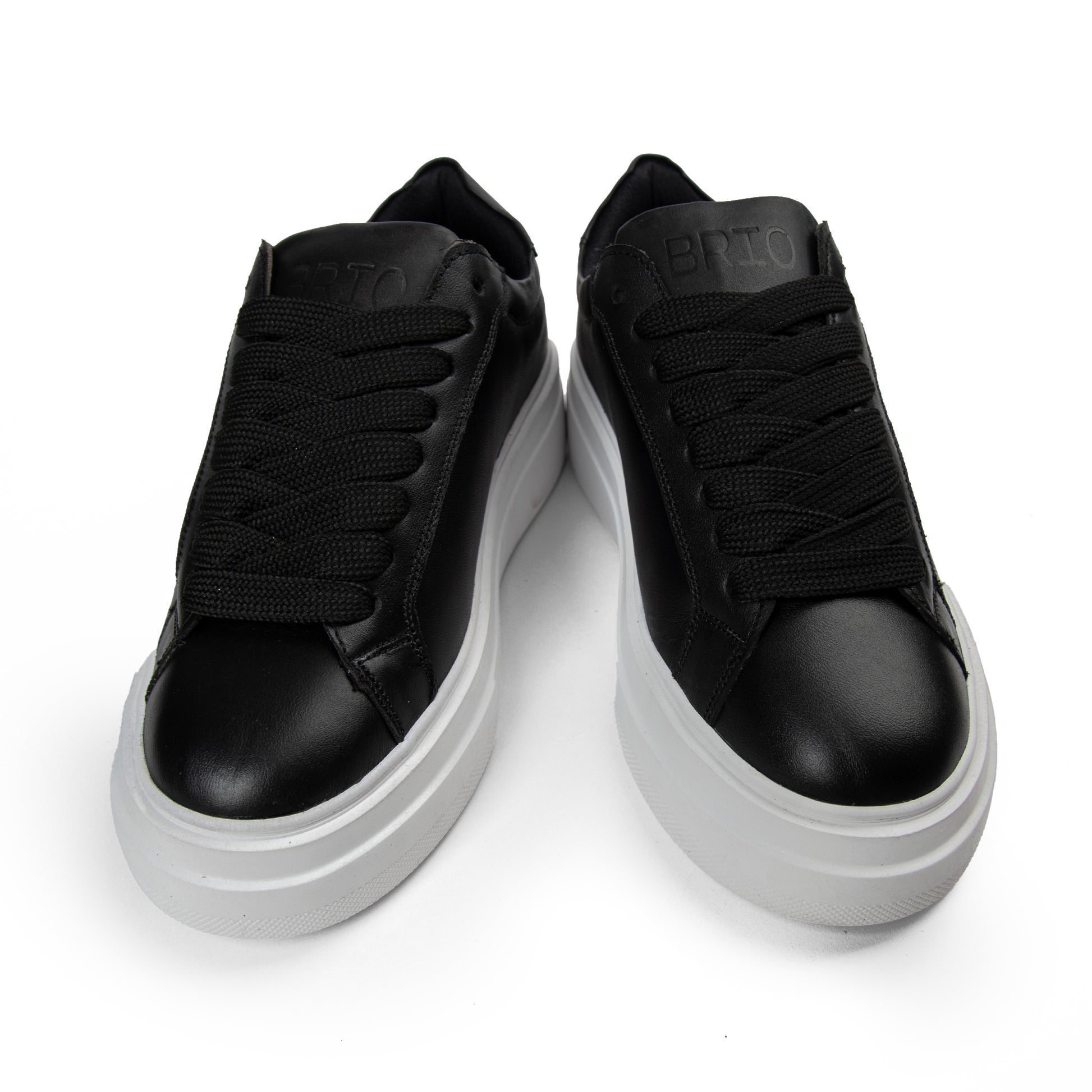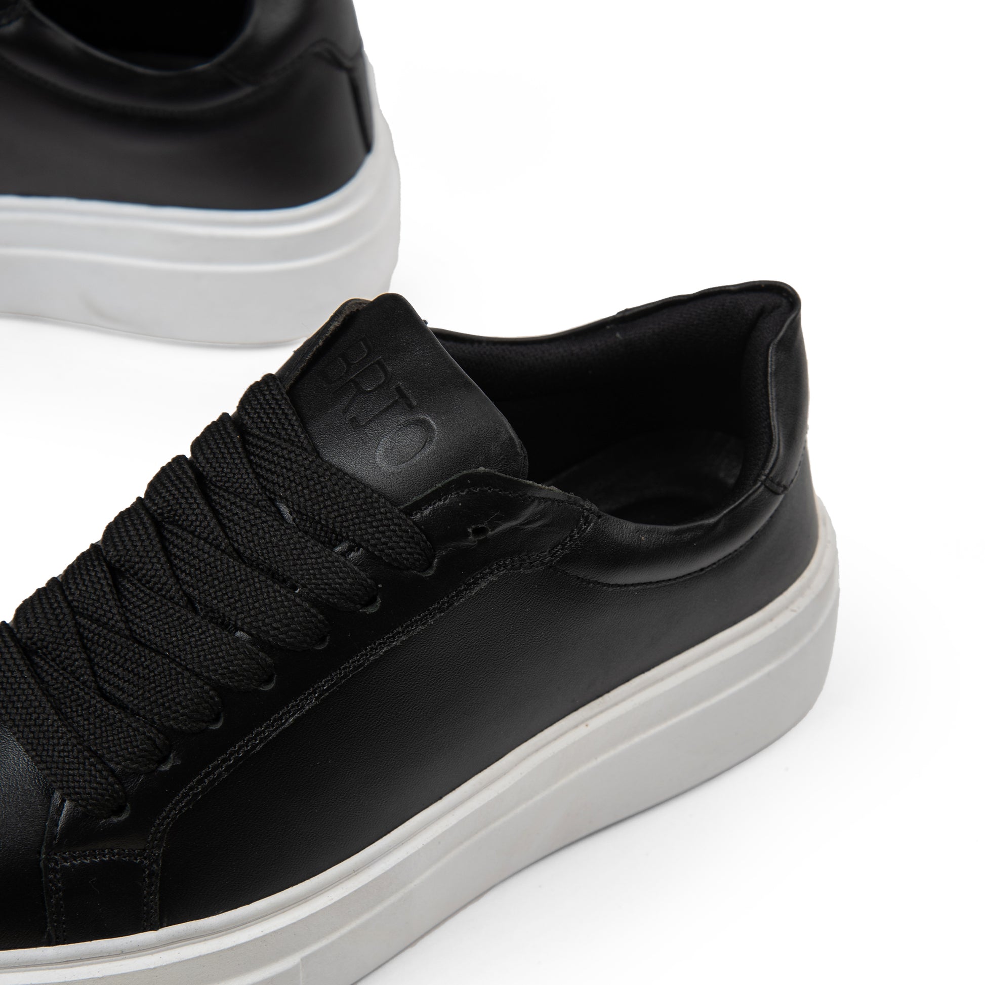 Experience the comfort of our BlancPeak Genuine Plain Leather Sneakers in stylish black. Crafted from natural leather, each shoe is hand-stitched for the perfect fit. Enjoy the soft feel of genuine leather with every step.