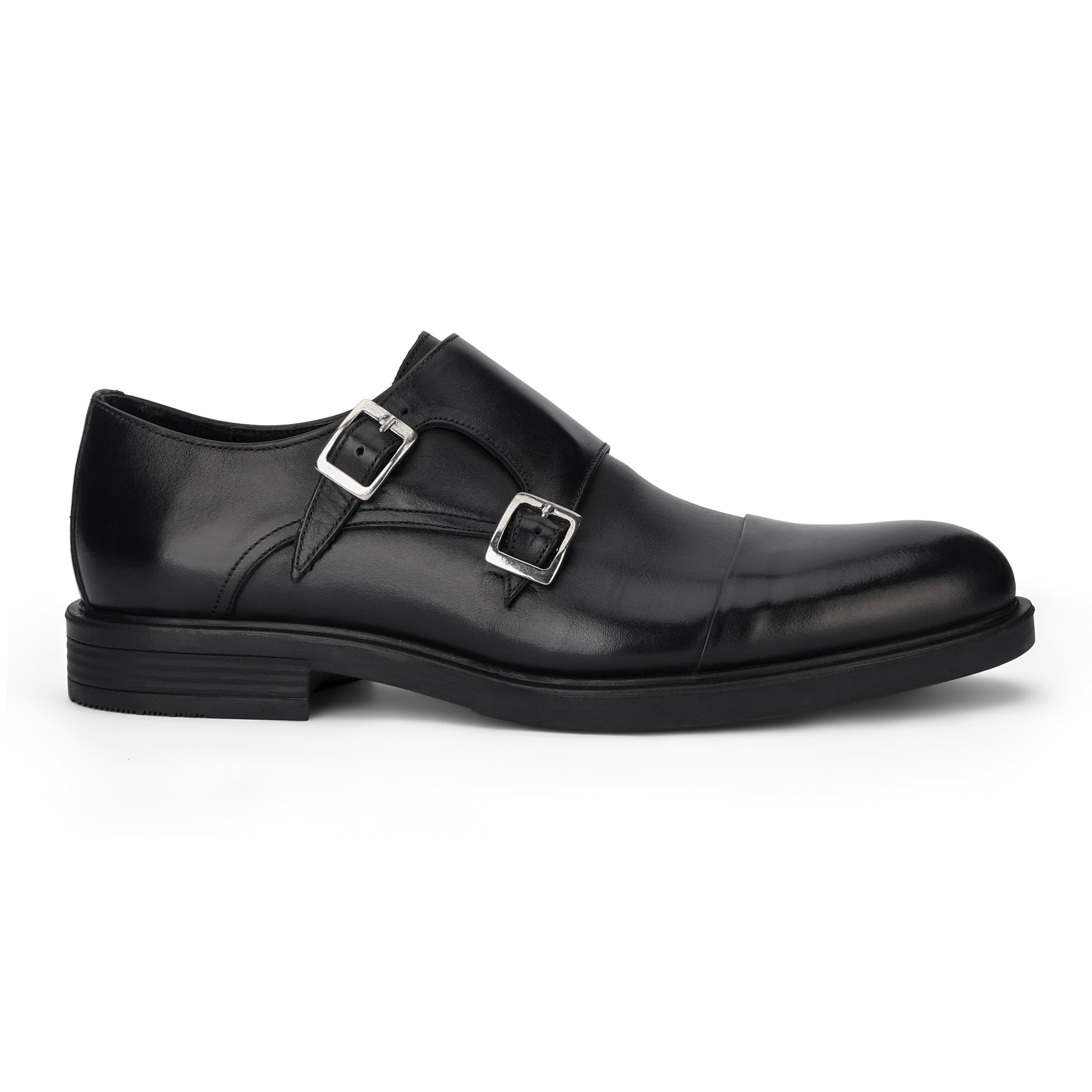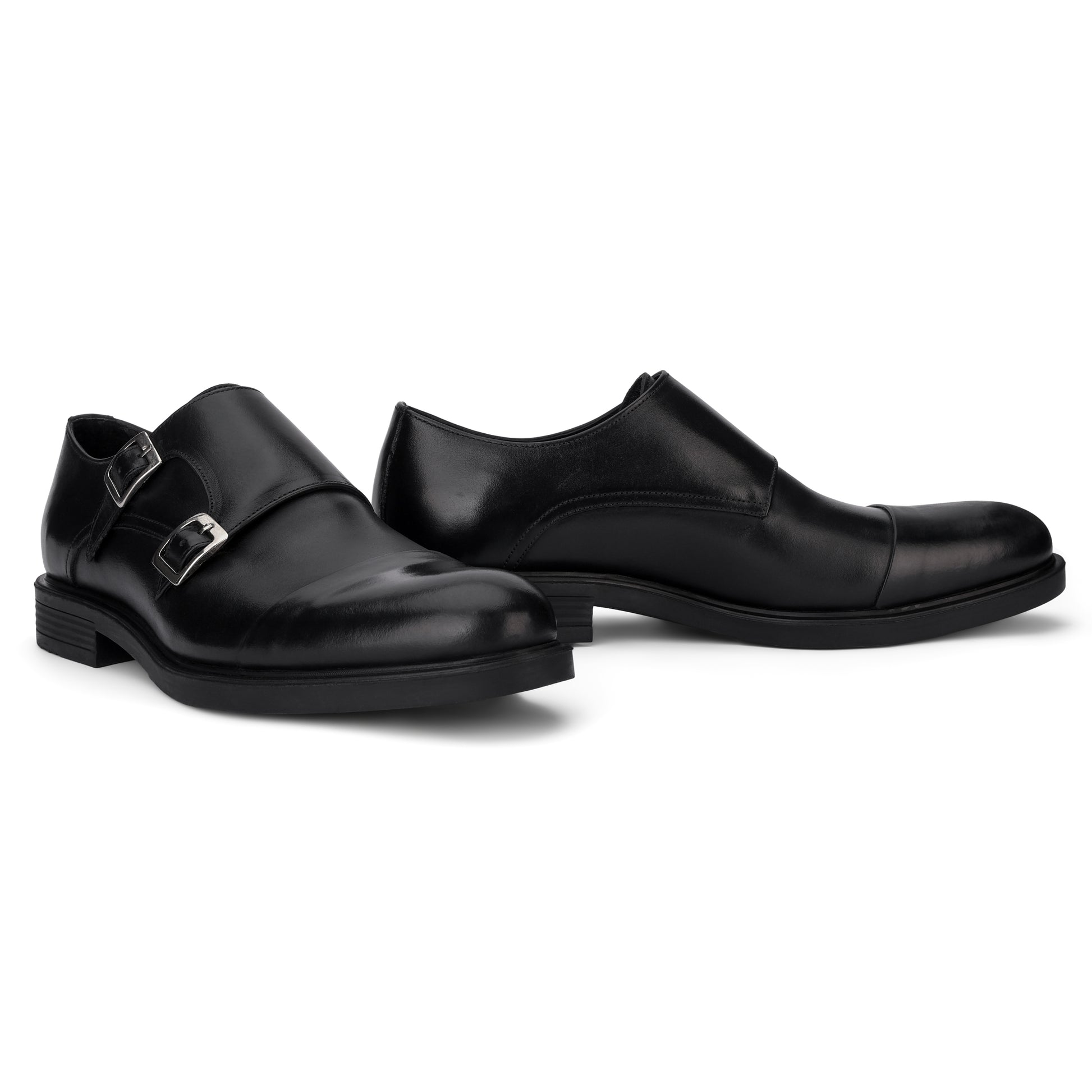 BRIO Genuine Leather Cap Toe Double Monk – Black