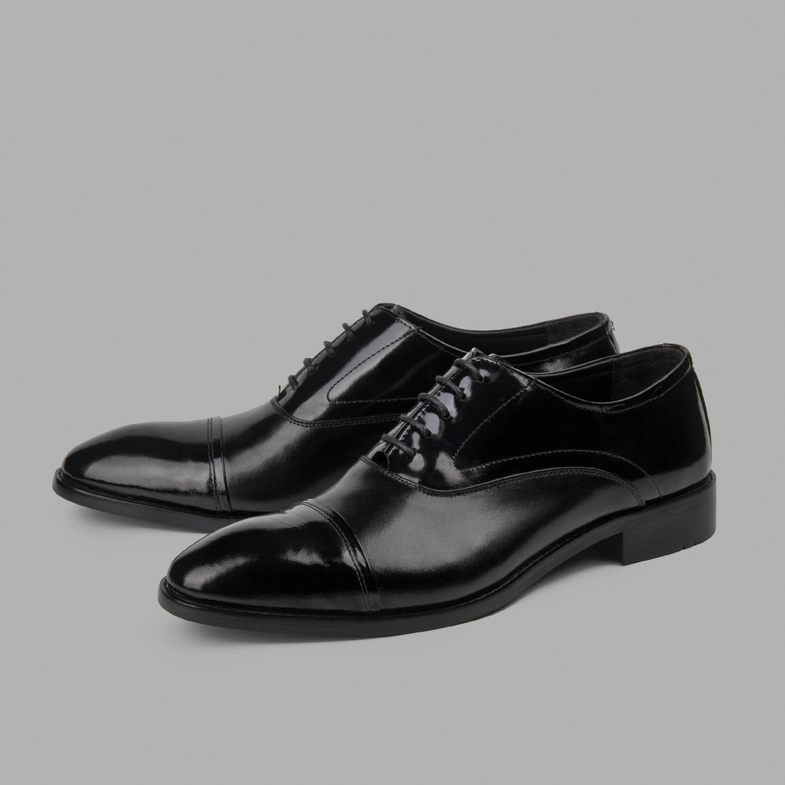 BRIO Genuine Leather Derby Cap Toe Glossy Shoes – Black