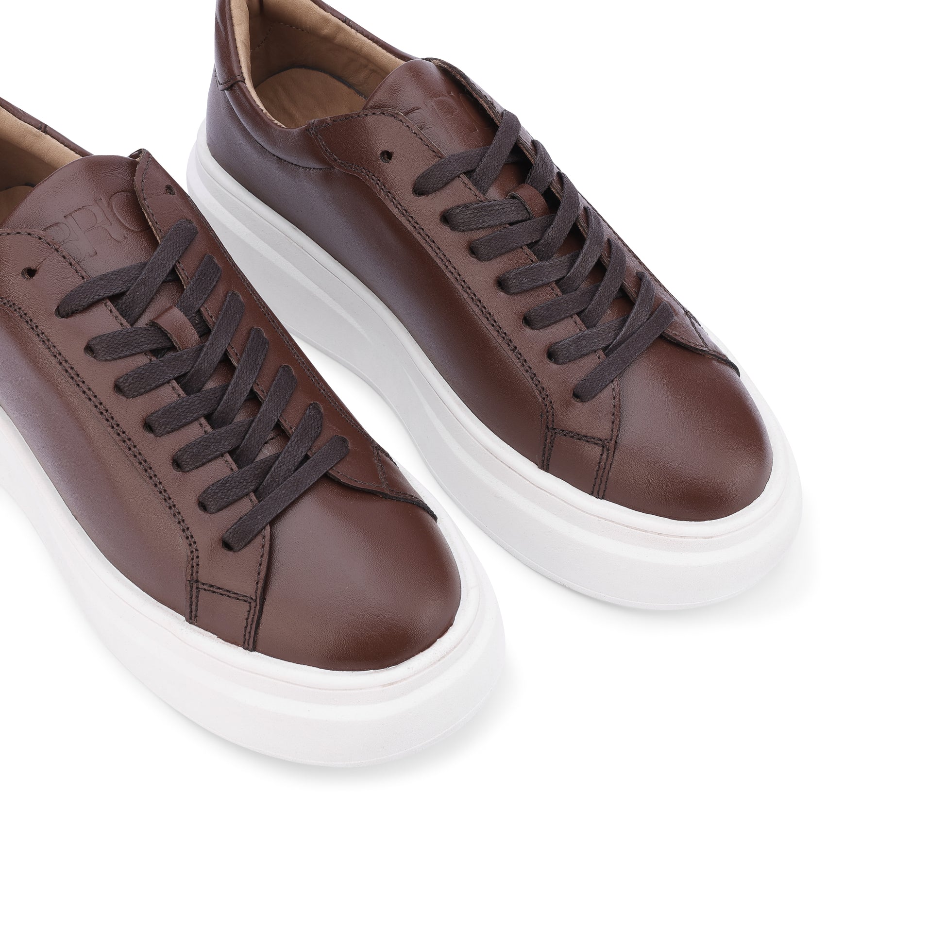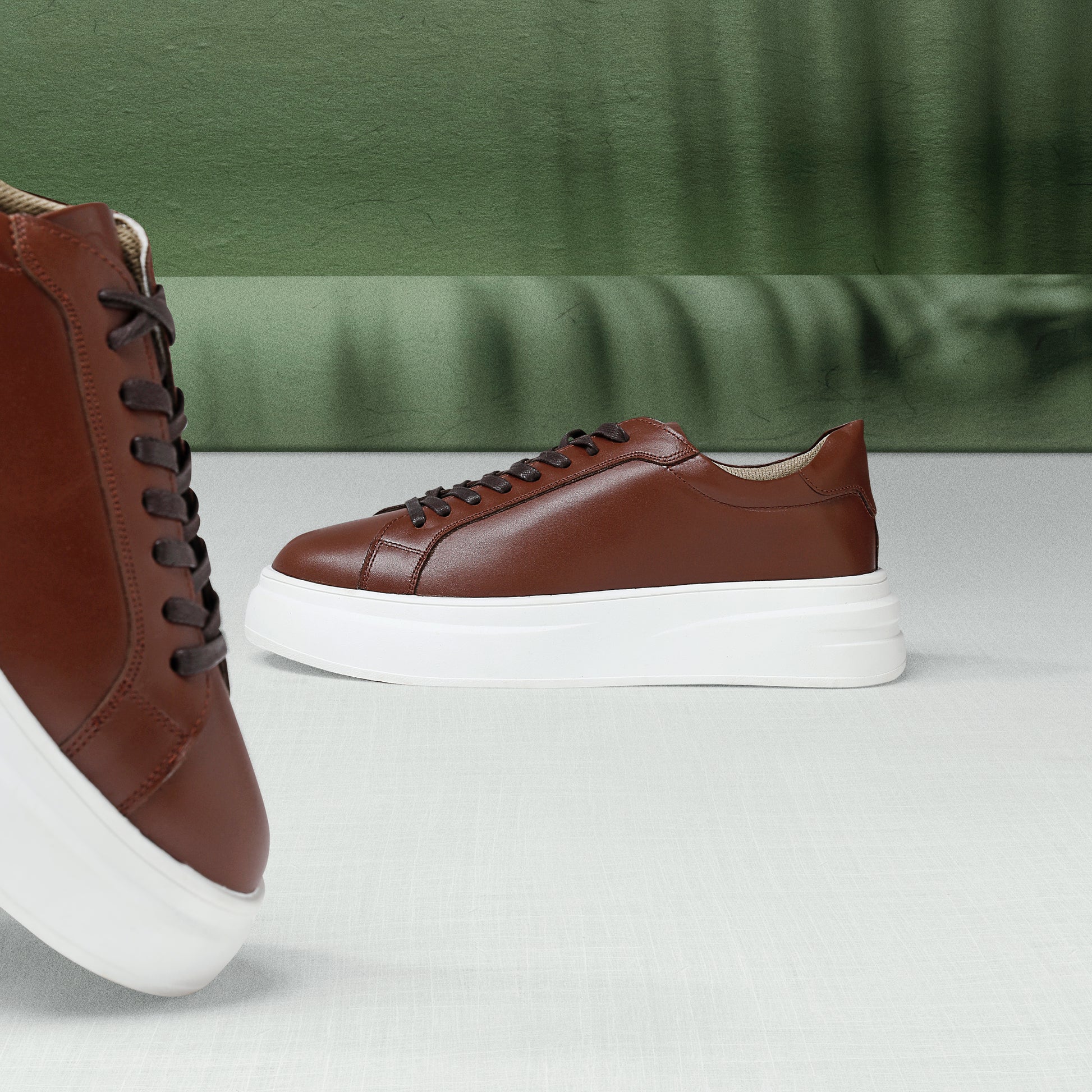 Experience the comfort of our BlancPeak Genuine Plain Leather Sneakers in stylish brown. Crafted from natural leather, each shoe is hand-stitched for the perfect fit. Enjoy the soft feel of genuine leather with every step.