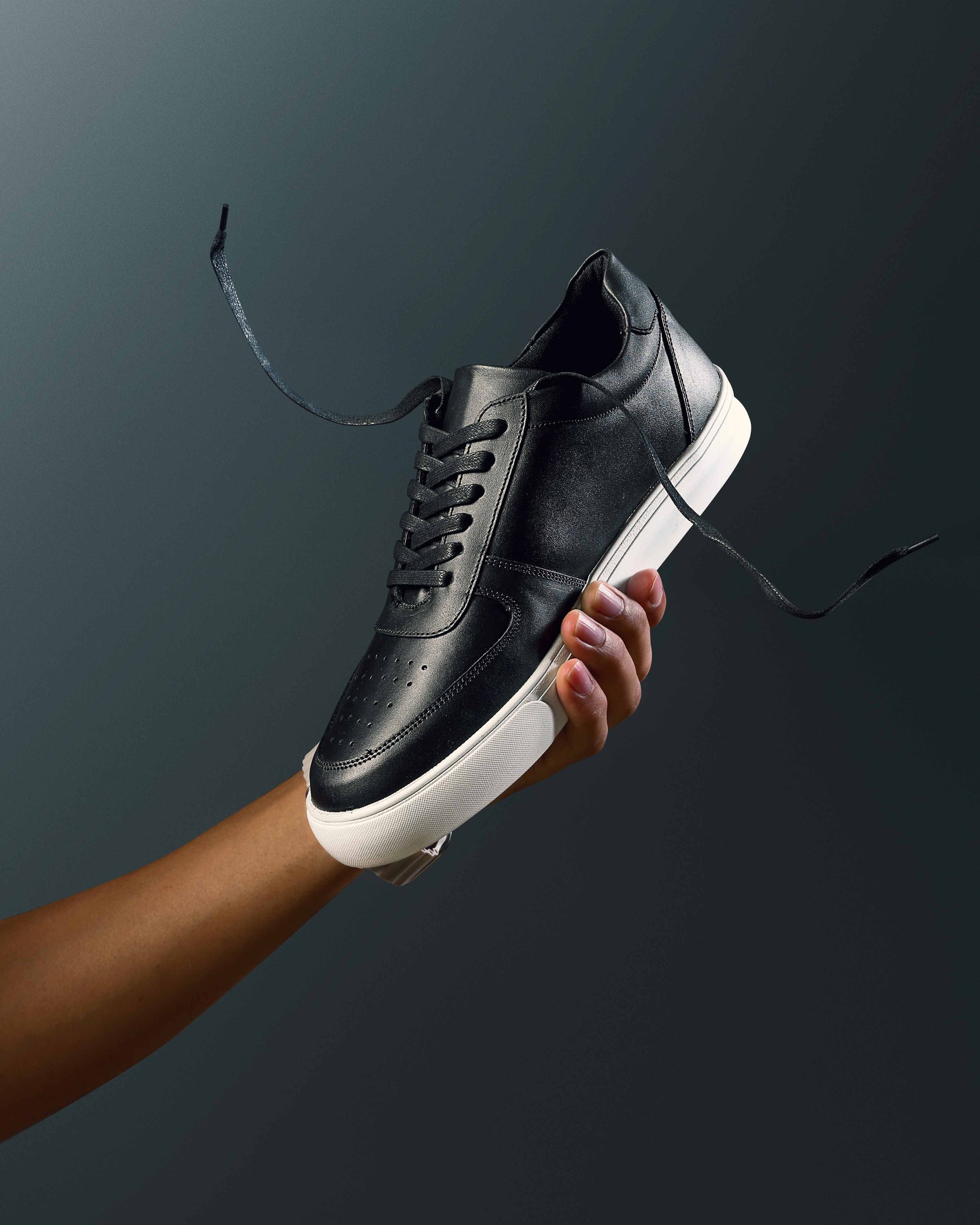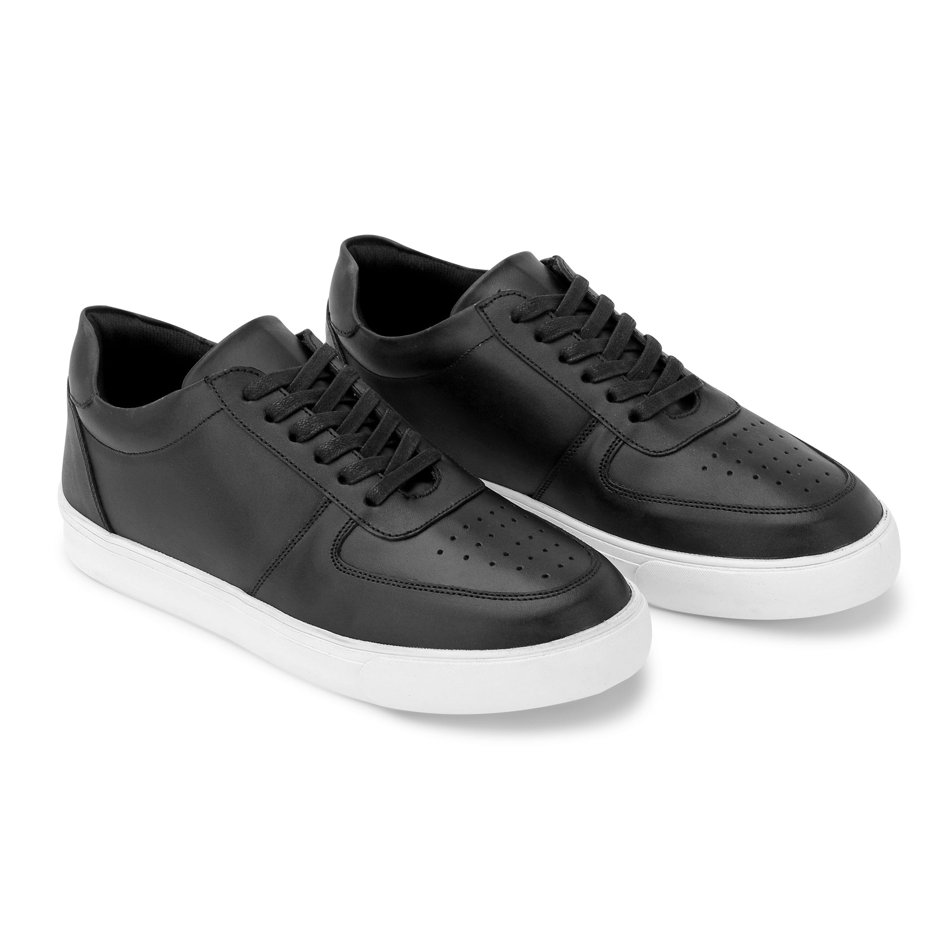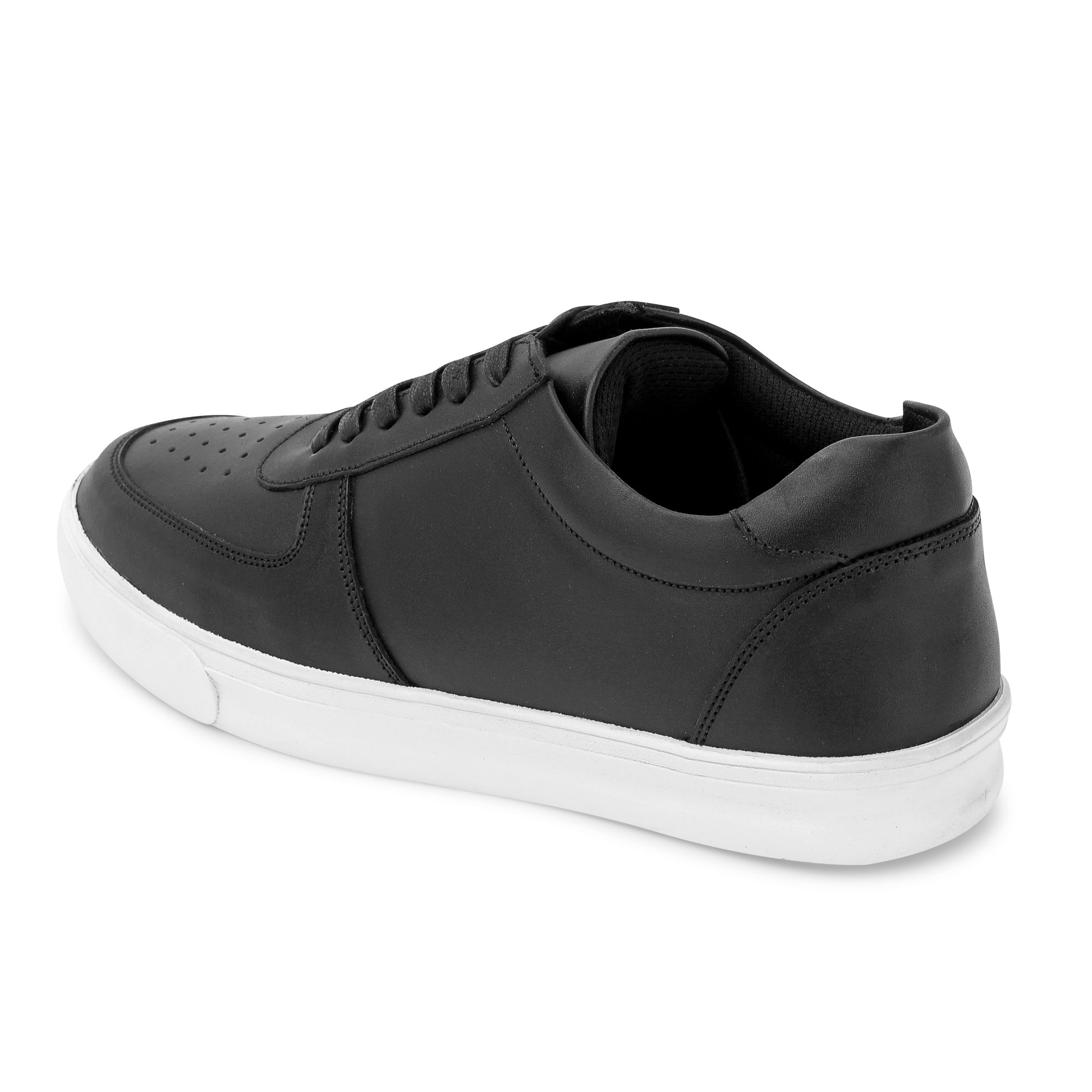 Stay clean and classic with these *all-BLACK leather sneakers for men*. Designed with a smooth faux leather upper, breathable perforated toe box, and cushioned sole for long-lasting comfort. Perfect for casual wear, smart street looks, or pairing with jeans, chinos, or shorts.