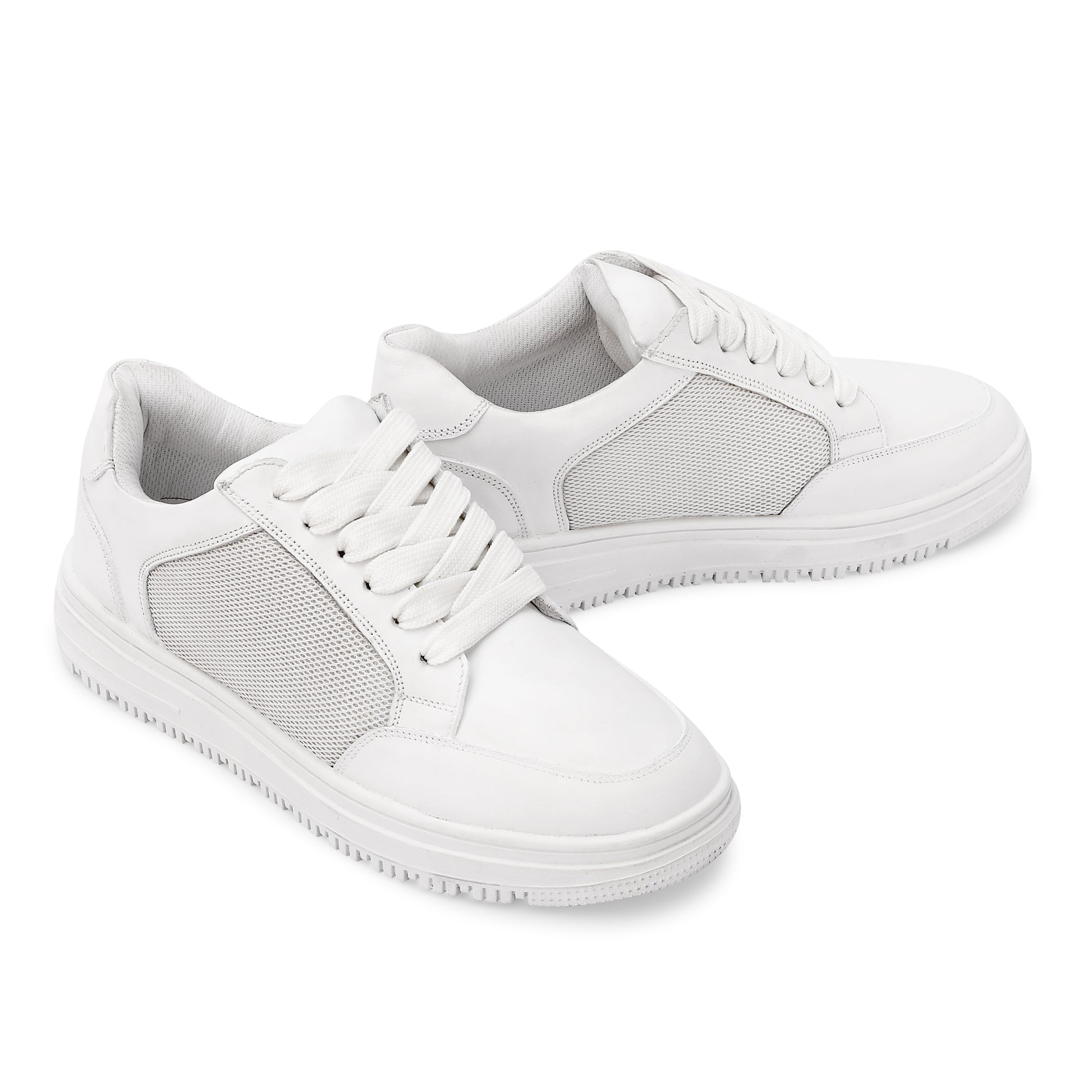 These sleek *white sneakers with grey mesh panels* offer a stylish look with added breathability and comfort. Perfect for casual outings, gym sessions, or everyday wear. Crafted with faux leather and a breathable mesh design, these sneakers ensure a fresh and comfortable feel all day long.